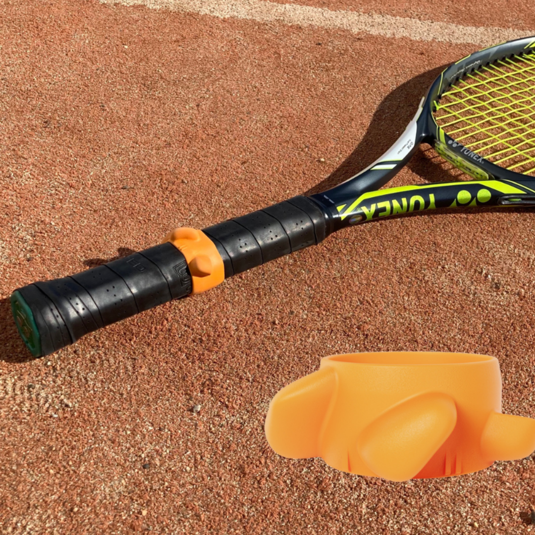 GripFixer fungerer som en fingerplaceringsguide; for semi-vestligt greb til forhånd og kontinentalt greb/hammergreb til baghånd, serv, volleys og smash.