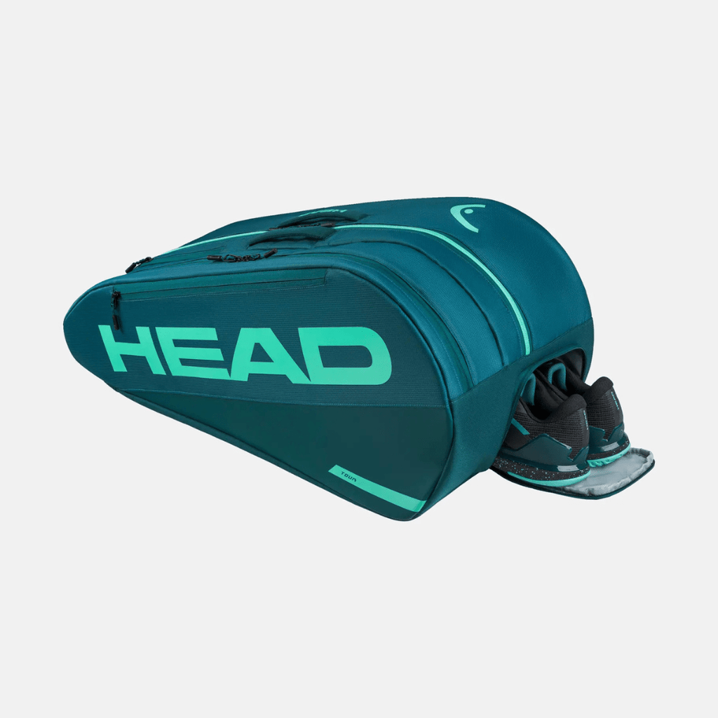 The HEAD Tour Racquet Tennis Bag L is a versatile and upgraded green-turquoise racquet bag for players who want a lot of space - but in a more convenient format. With new premium fabric and improved functionality, it's designed after feedback from players who want easy access, great protection and smart organization.