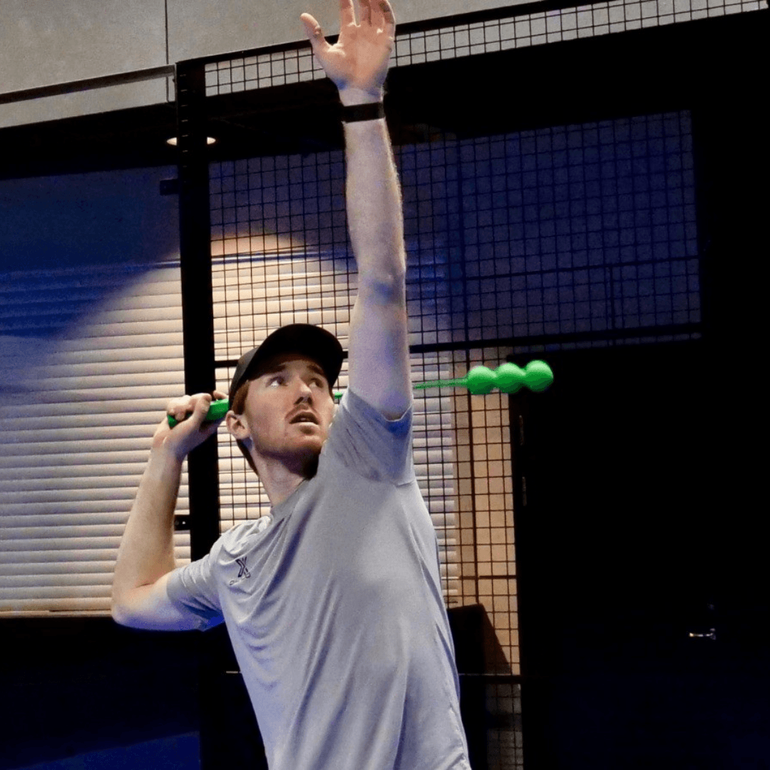 SmashMaster, det innovativa padelträningsverktyget som får dig att bemästra din smash! Hjälpmedlet får dig att hitta rätt teknik och flyt i smashrörelsen. Den kommer att lära dig hur du ska röra dig korrekt; hur du skapar kraft genom att använda "ryggsäck-tekniken", där du för ditt rack bakom ryggen och sedan släpper iväg ditt rack genom att nästan kasta racketen uppåt i en rörelse. Detta för att hitta rätt höjd i smashen. Som spelare måste du verkligen lära dig använda all höjd du kan skapa och slå så högt du kan för att få till bästa möjliga smash. Med SmashMaster kan du hitta rätt flöde och rätt teknik - och med tillräckligt med träning kan du till och med lära dig slå ut bollen från buren!